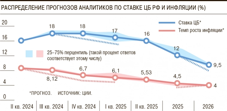Эксперты Центрального банка пересмотрели свои прогнозы на 2025 год, увеличив ожидаемый уровень инфляции до 6,6%. Ранее, в сентябре, этот показатель составлял 6,4%. Аналогично, ожидания по средней ключевой ставке также выросли с 19% до 19,2%.