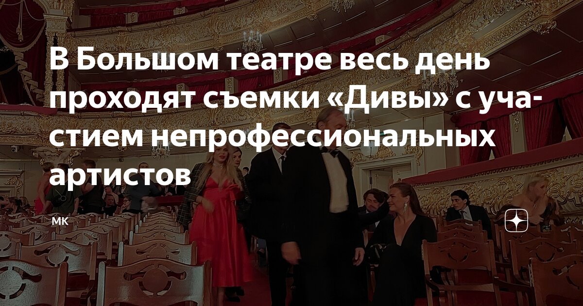 Пятого августа, с самого утра и до позднего вечера, легендарная историческая сцена Большого театра стала съемочной площадкой для нового проекта Анны Меликян — фильма «Дива». Лента создается той же студией, что подарила зрителям «Мастера и Маргариту», обещая обилие фантастических элементов и захватывающей эстетики. Сама Меликян на презентации проекта подчеркивала, что «Дива» станет ее самым визуально притягательным и при этом ироничным произведением.