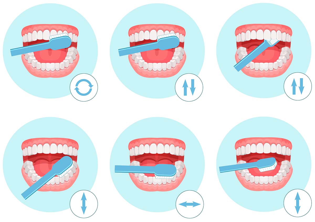 Говоря о технике чистки, специалист пояснила, что движения щеткой должны быть следующими: на передней и задней поверхностях зубов – «выметающие», направленные от десны к краю зуба. На жевательных поверхностях зубов допускаются возвратно-поступательные движения.