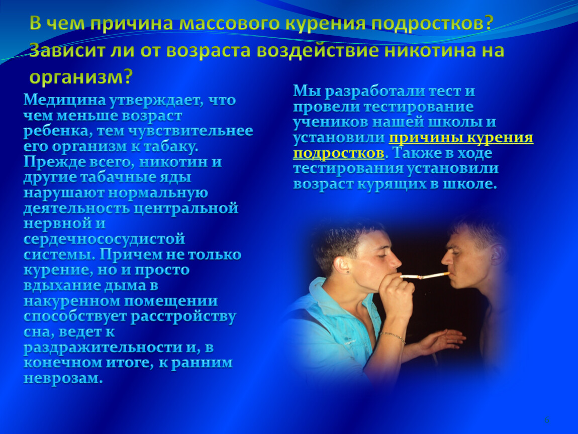 Ученые предполагают, что курение в пубертатный период может наносить вред формирующимся сперматозоидам, и эти повреждения впоследствии передаются следующему поколению. Примечательно, что курение матерей до беременности не оказало подобного влияния на темпы старения детей.