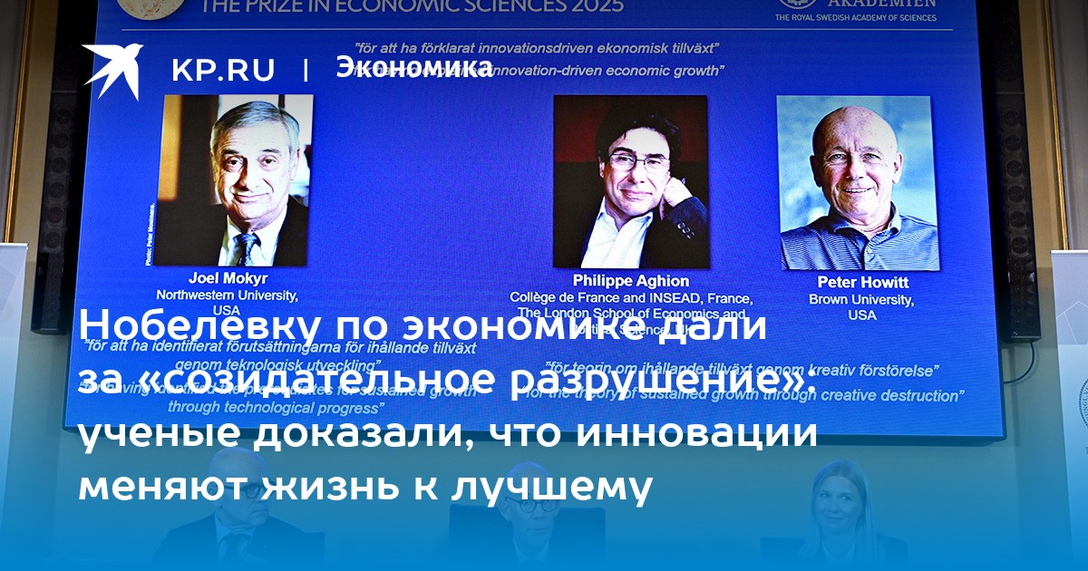 Нобелевская премия по экономике за 2025 год была вручена Джоэлу Мокиру, Филиппу Агьону и Питеру Ховитту. Их работы получили признание за новаторское объяснение процессов экономического роста, движимого инновациями.