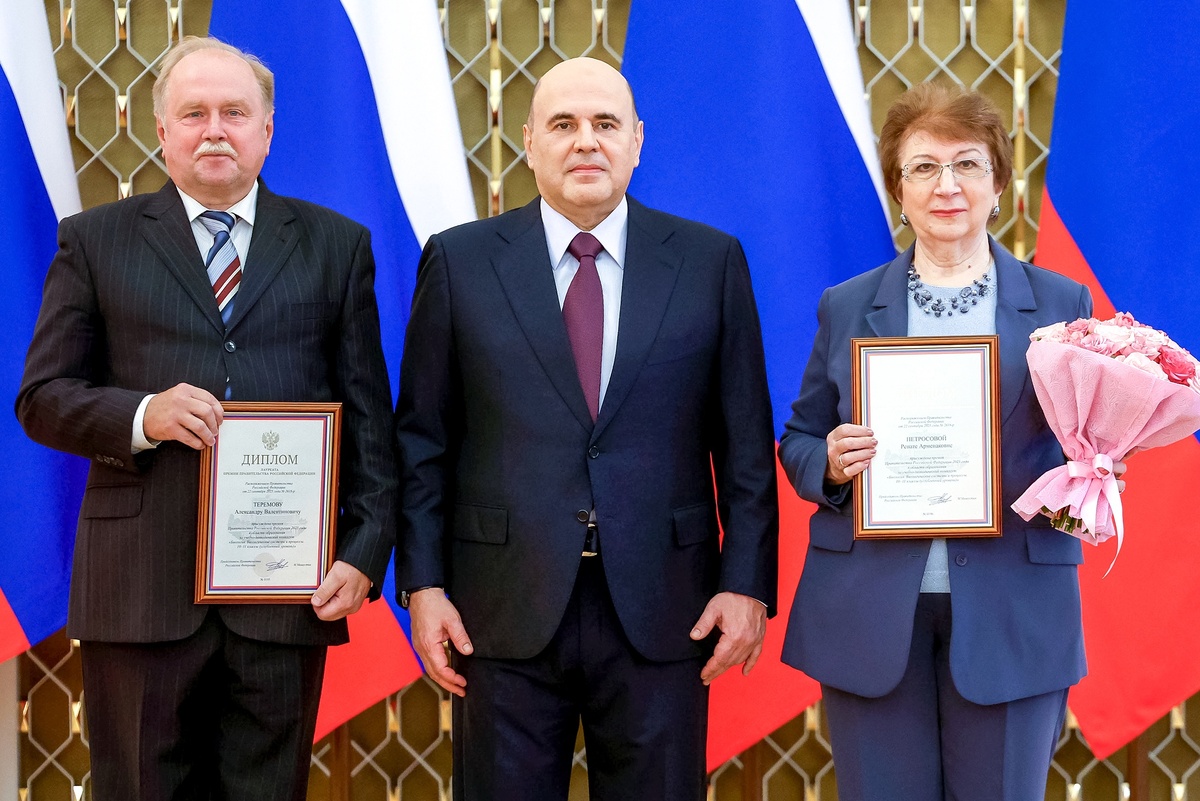 Благодарности правительства за значительные заслуги в области образования и плодотворную работу были объявлены пятерым учителям, представляющим различные регионы страны: Алтайский край, Еврейскую автономную область, Санкт-Петербург, Донецкую Народную Республику и Забайкальский край.