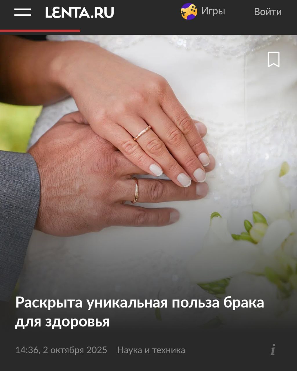 Новое исследование, проведенное учеными из Мичиганского университета и Университета менеджмента Сингапура, выявило, что люди, состоящие в браке, в среднем ощущают себя здоровее и счастливее по сравнению с одинокими. Анализ данных почти пяти тысяч взрослых в США и Японии показал, что неженатые или незамужние чаще жалуются на плохое самочувствие и низкую удовлетворенность жизнью. Эти результаты были опубликованы в журнале Personal Relationships.
