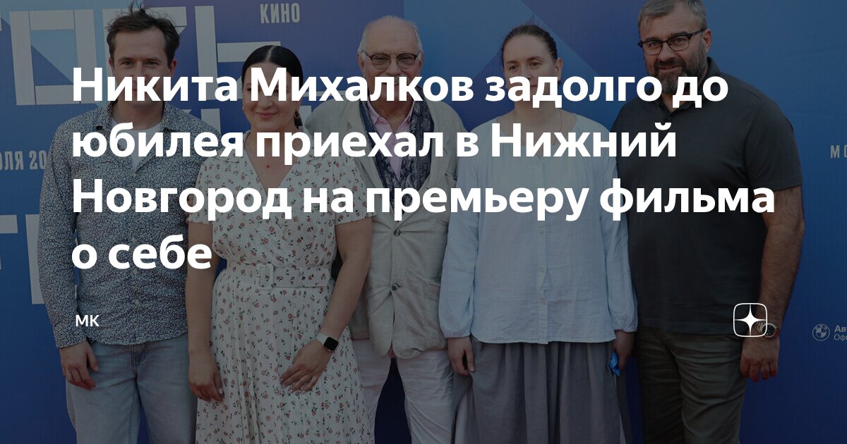 Кинофестиваль «Горькийfest» в Нижнем Новгороде стал местом премьеры документального фильма, посвященного Никите Михалкову. Примечательно, что сам режиссер прибыл на показ картины, которую до этого не видел, в день, омраченный известиями о кончине известных кинематографистов Александра Митты и Юрия Мороза.
