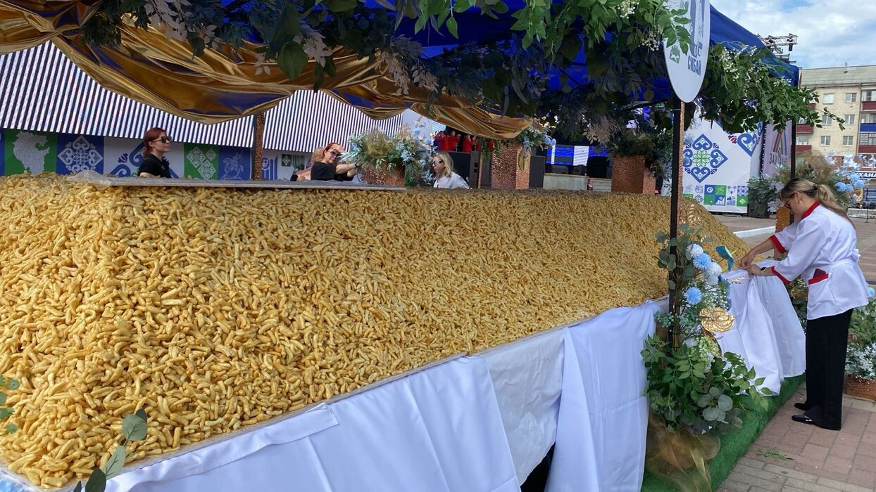 В городе Сибай, Республика Башкортостан, был приготовлен один из крупнейших в России чак-чаков, приуроченный к 70-летнему юбилею города. На центральной площади развернулись праздничные мероприятия, главной достопримечательностью которых стал гигантский чак-чак. Его вес составил 980 килограммов, а длина превысила 6 метров. Над созданием этого уникального лакомства трудились 22 пекаря в течение 15 дней. Для его приготовления, по словам кондитеров, потребовалось свыше 6,5 тысяч яиц, 123 килограмма мёда и 330 килограммов муки.