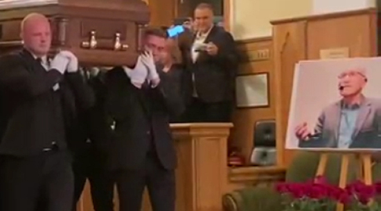 К 13:50 Малый зал опустел, поскольку все присутствующие переместились в фойе и на улицу. Традиционные аплодисменты, которыми провожают деятелей искусства, начались еще в зале, как только гроб подняли. Удивительно, но эти овации быстро смолкли: путь от Малого зала до катафалка, стоявшего прямо у выхода из ЦДЛ, составлял всего несколько десятков метров. И как только гроб был помещен в автомобиль, хлопать перестали все, за исключением двух человек, чьи одиночные аплодисменты звучали еще около минуты.