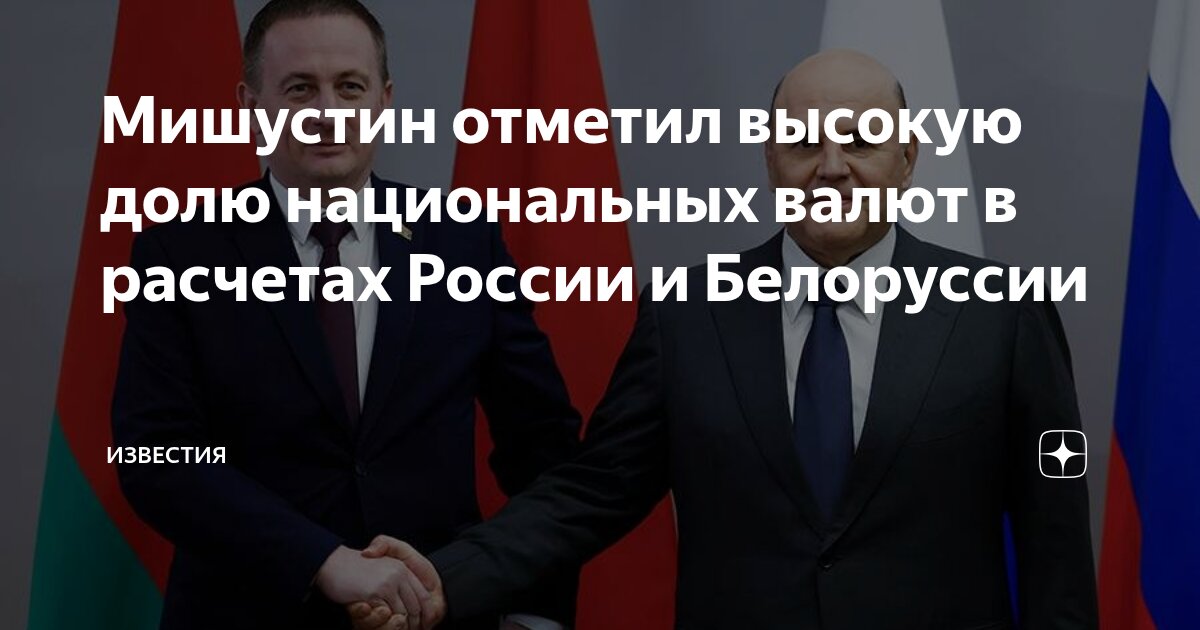 В ходе встречи с премьер-министром Беларуси Александром Турчиным, глава российского правительства Михаил Мишустин объявил о значительном прогрессе в экономических связях между двумя государствами. Согласно его заявлению, более 90% всех двусторонних финансовых операций между Россией и Беларусью теперь осуществляются в их национальных валютах.