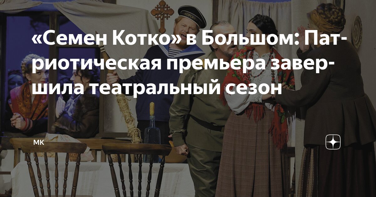 На Исторической сцене Большого театра состоялся цикл премьерных показов оперы Сергея Прокофьева «Семен Котко». Режиссерами-постановщиками выступили маэстро Валерий Гергиев и Сергей Новиков. Это значимое событие, завершающее театральный сезон, предвещает наступление новой эры для Большого театра, чья миссия — формировать и доносить до публики государственную культурную политику. Спектакль наполнен мощной духовной и эстетической энергией, отличается высочайшим художественным уровнем и несёт в себе глубокую идеологию, без которой истинное искусство и культура не могут существовать. Эта премьера по праву считается патриотическим манифестом ведущего театра страны.