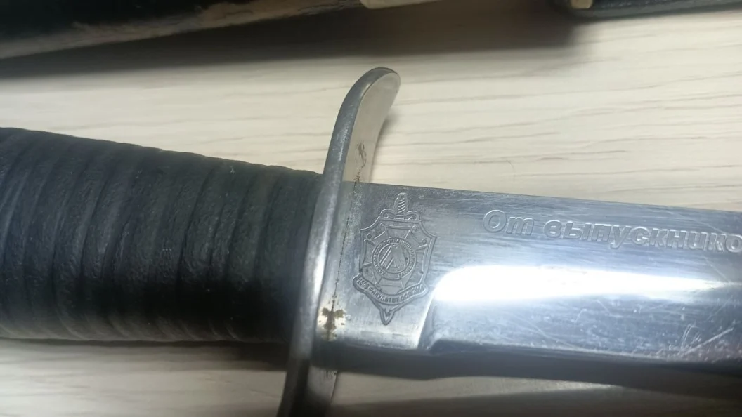 Автор публикации в Telegram-канале попросил подписчиков, являющихся выпускниками Хабаровского пограничного института, откликнуться. Военнослужащий выразил желание передать эту финку тем, кто может быть с ней связан.