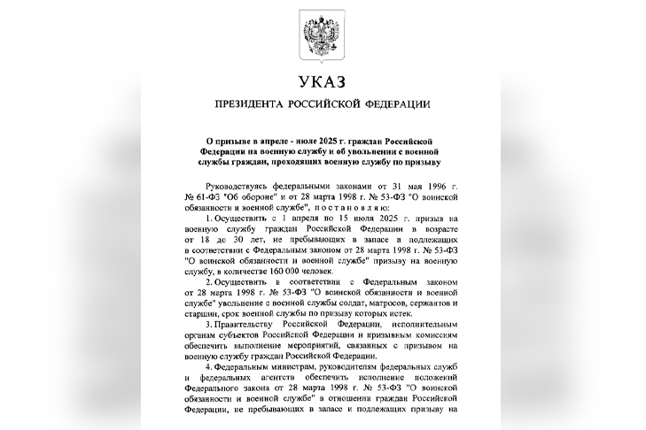 Президент Российской Федерации Владимир Путин официально подписал указ о начале осеннего призыва на военную службу. Кампания стартует 1 октября 2025 года.