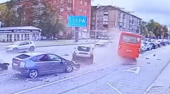 В Нижнем Новгороде рейсовый автобус протаранил несколько машин: видео
