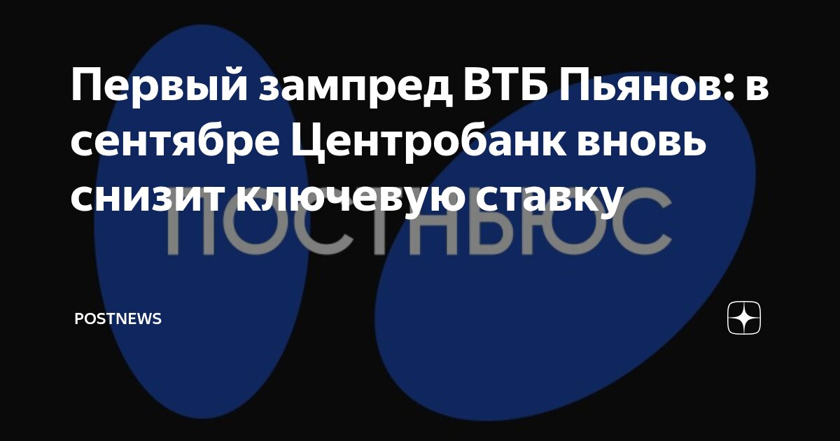 Первый заместитель председателя правления ВТБ, Дмитрий Пьянов, выразил уверенность в том, что на предстоящем заседании 12 сентября Центральный банк России примет решение о снижении ключевой ставки. По его мнению, регулятор уменьшит ставку либо на 100, либо на 200 базисных пунктов.