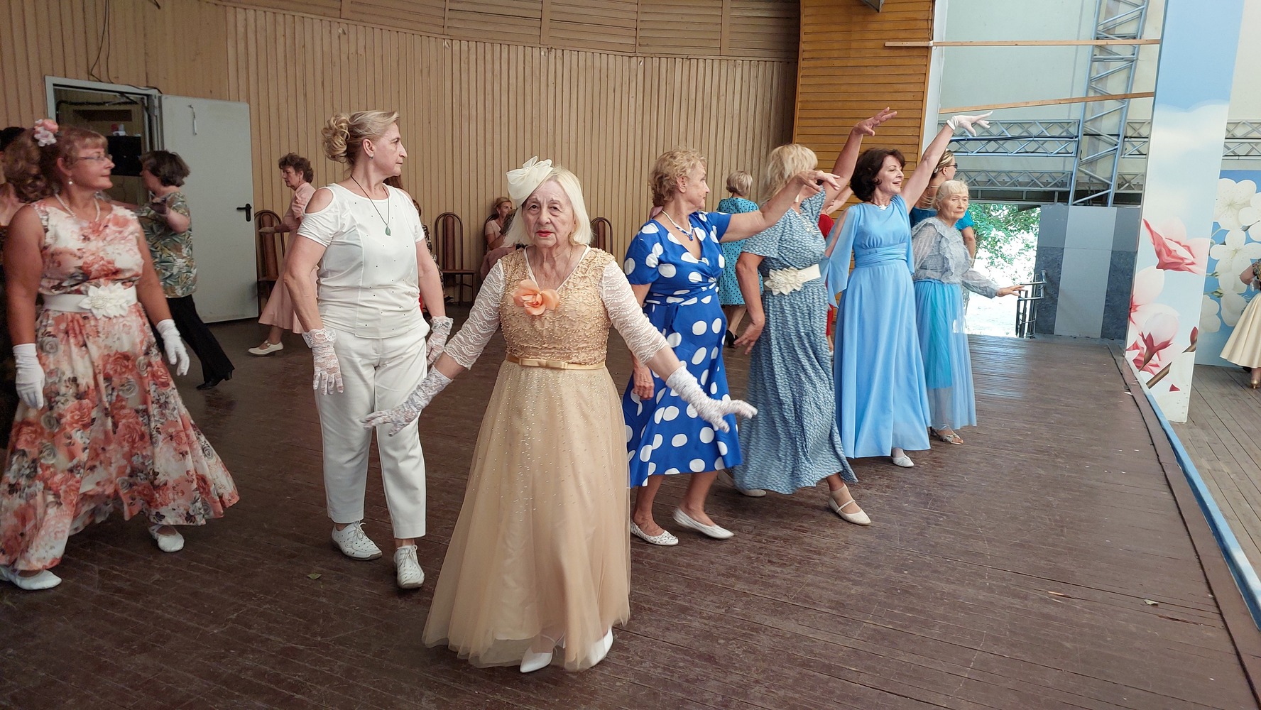 Каждую субботу десятки энергичных танцоров, преимущественно люди в возрасте 60 лет и старше, собираются, чтобы продемонстрировать своё мастерство и неиссякаемую энергию. Они прибывают в изысканных нарядах: дамы в элегантных платьях, стильных шляпках и перчатках, кавалеры в экстравагантных рубашках и бабочках. Репертуар впечатляет своим разнообразием, охватывая 55 различных танцевальных стилей – от классического вальса-гавота, страстного танго, задорной кадрили и мазурки, до ритмичных самбы, польки и румбы, а также любимых народных танцев, таких как «Сударушка» и «Тарантелла Пульчинелла». Это захватывающее зрелище неизменно привлекает внимание прохожих, включая многочисленных китайских туристов, которые с удовольствием наблюдают за танцами под открытым небом.